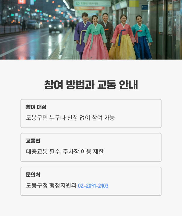 행사 참여는 별도의 신청 없이 도봉구민 누구나 가능합니다.