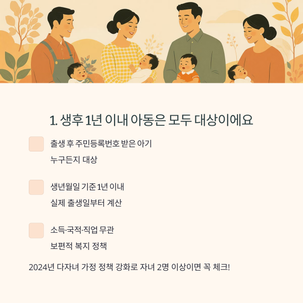 2024년 1월 1일 이후 출생한 아동부터 적용되는 기준은 다음과 같습니다.