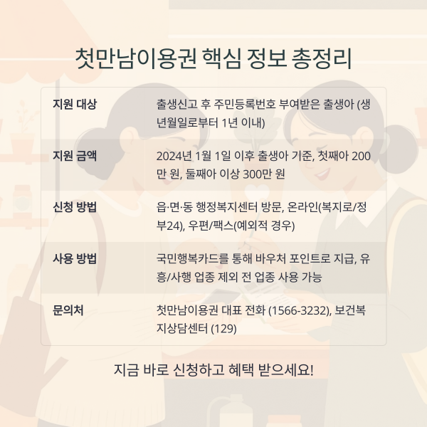 첫만남이용권 지원대상 및 신청방법은 아이가 태어난 가정이라면 누구나 꼭 확인해야 할 핵심 정책입니다.